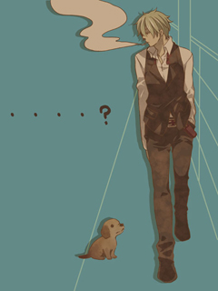 嗯,右边那张萌点在于那只狗狗,大概狗狗和男人萌点指数7:3吧……当然如果要是换成黑猫君跟流川枫……5:5(你在联想些什么 = =b